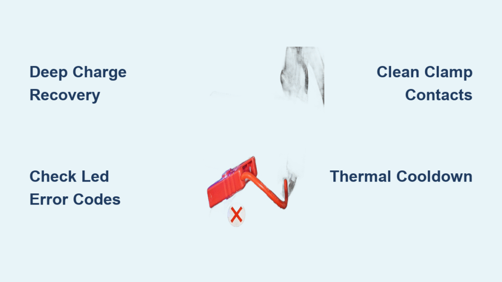 Visual cue: If clamps turn warm after one attempt, stop—your vehicle’s starter motor may be drawing excessive current.