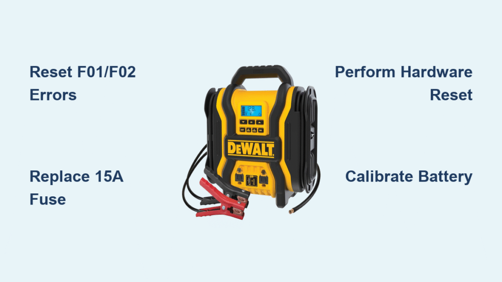 Stop wasting money on replacements when a 30-second dewalt jump starter reset could restore full functionality. By the end of this guide, you’ll confidently diagnose “F02” overheating errors, replace blown fuses in the 12V port, and calibrate your battery indicator after resets. Keep this article in your glovebox—you’ll reference it during your next roadside emergency when every second counts.