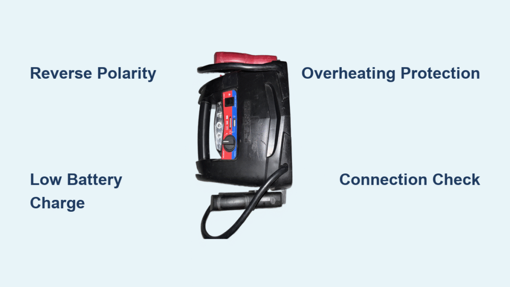 That frantic beeping started the instant you connected clamps? You’ve reversed the polarity—a common mistake with dangerous consequences. Here’s your emergency fix: