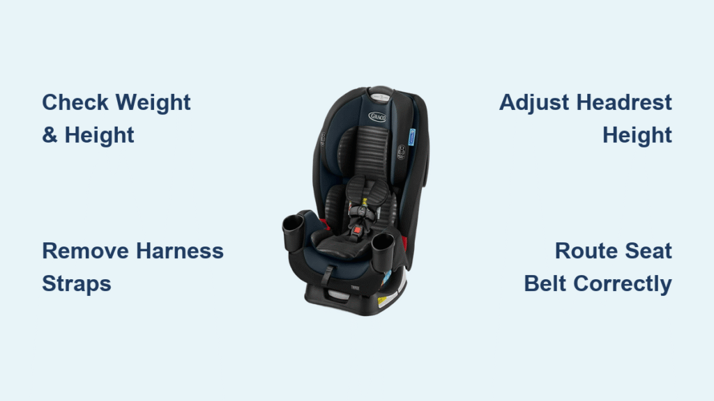 Before touching any straps, verify your child satisfies Graco’s strict booster mode criteria. Using a booster before your child meets these requirements creates dangerous gaps in protection during sudden stops or collisions.