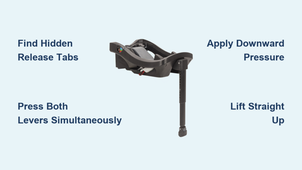Once both levers disengage (you’ll feel a distinct “click” or give-way), lift the base straight upward in a single fluid motion. Avoid tilting, twisting, or wiggling—the anchors release vertically. If the base lifts unevenly, lower it immediately and re-engage both releases. For heavier bases like the Lite Max All-in-One, keep your elbows tucked in to maintain control during lift-off.