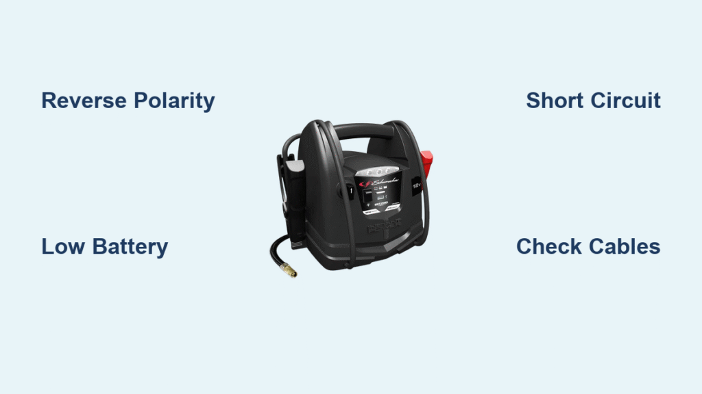 Fast, repetitive beeping indicates a potentially dangerous short circuit. This protective shutdown prevents damage to your Schumacher jump starter but requires immediate troubleshooting. Common culprits include: