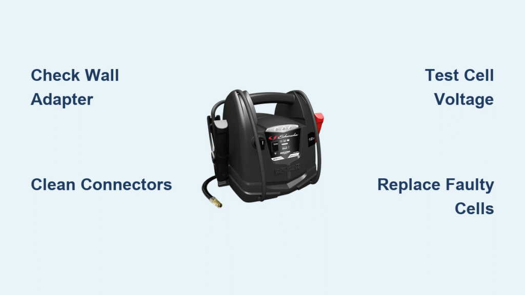 Most Schumacher jump starter not working scenarios stem from three preventable issues: corroded connections, degraded battery cells, or charging system failures. I’ve repaired hundreds of these units, and the fix usually starts with checking external power sources before moving to internal diagnostics. By following this systematic approach, you’ll bypass common repair pitfalls and get back on the road faster. Let’s diagnose and solve your specific problem.