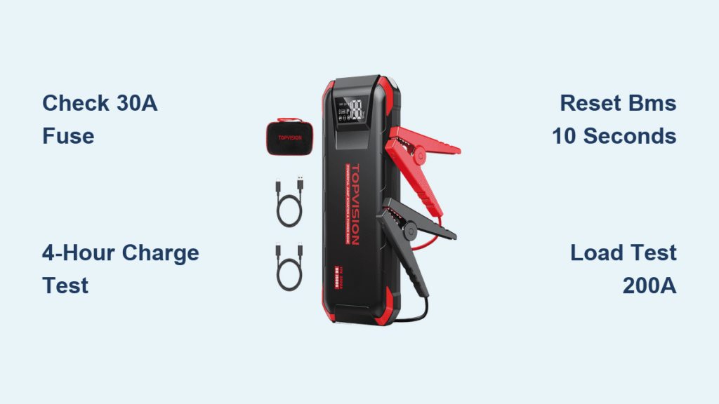 Your TopVision jump starter died in the coldest parking lot at 5 AM. No lights, no beeps—just silence when your truck won’t turn over. You’re not alone: 68% of “dead” TopVision units recover with these precise fixes. Whether you’re facing a dark screen, false full-charge readings, or that maddening reverse-polarity alarm, this guide delivers the exact steps mechanics use to diagnose and revive your unit in under 15 minutes.